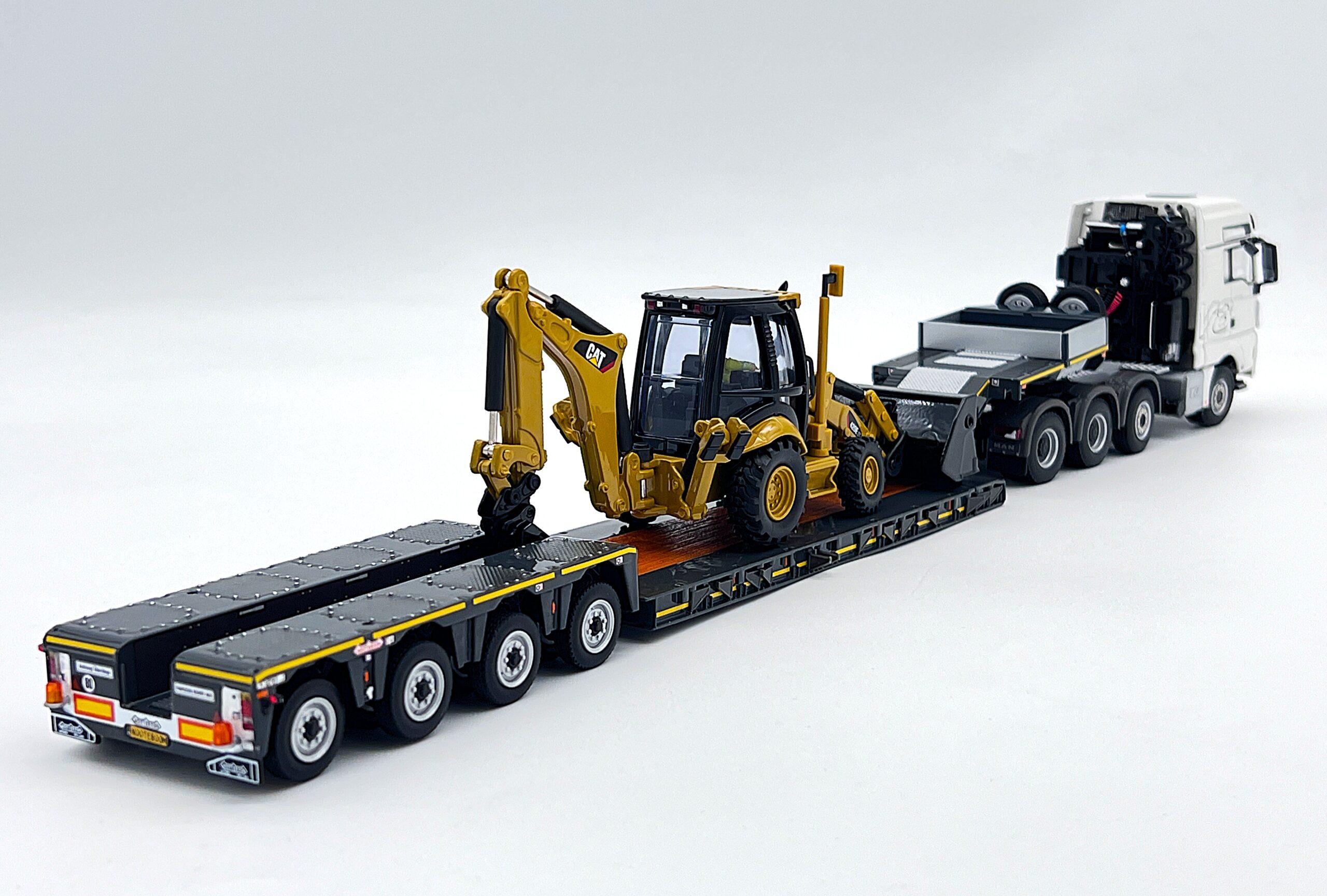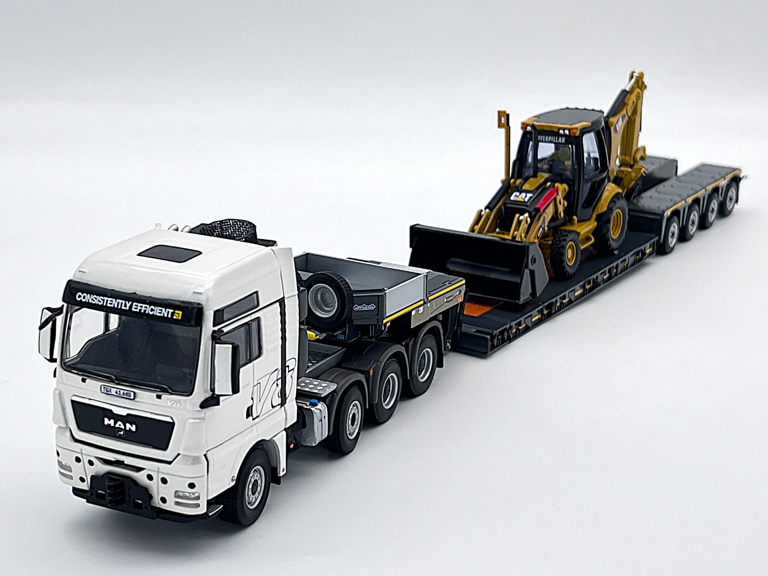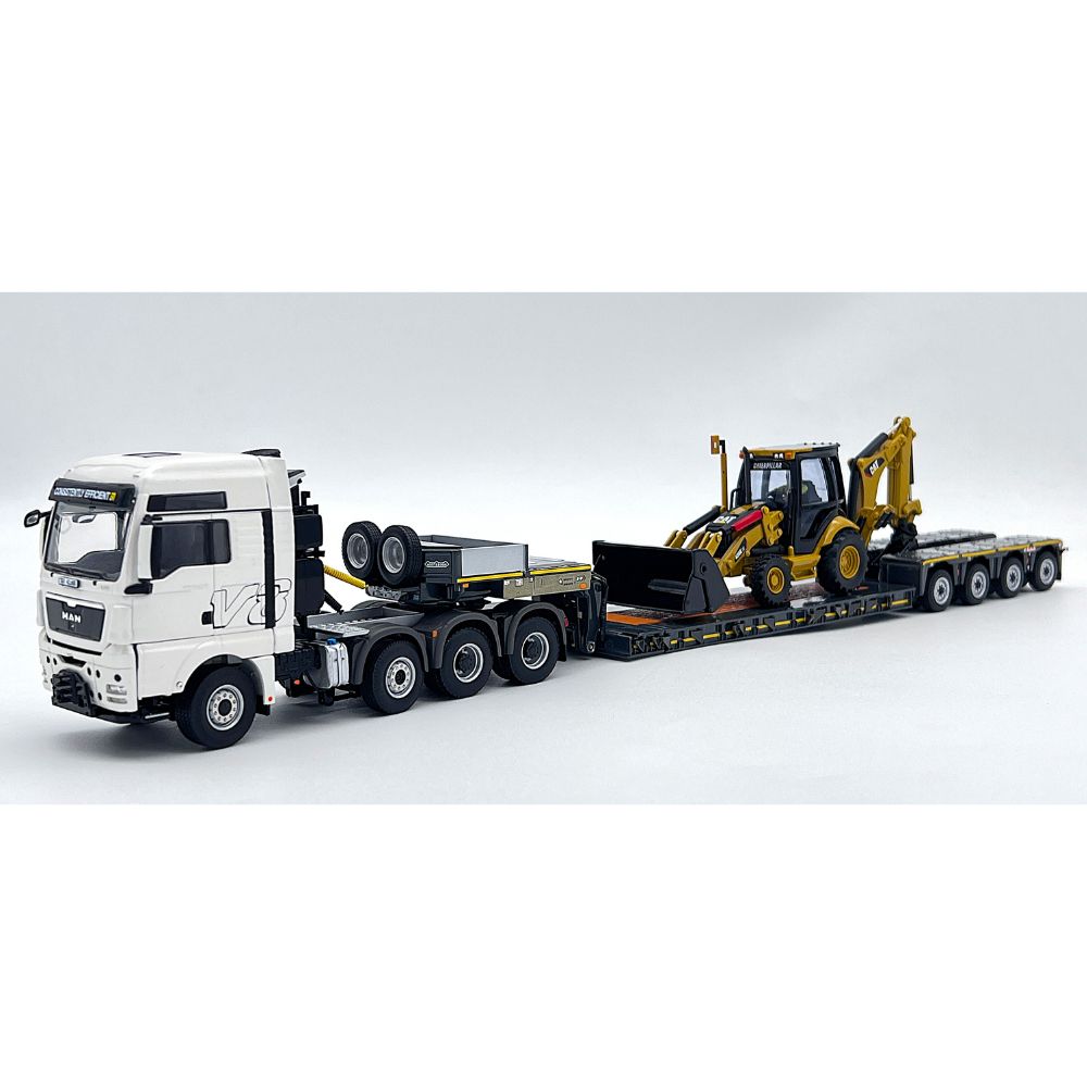 MAN TGX XXL 8×6 lowloader trailer + CAT side loader WSI Truck Models